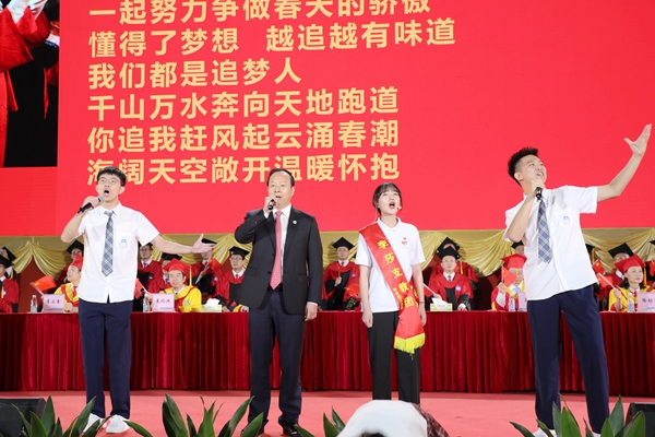 现场,章熙春领唱《我们都是追梦人》,用歌声鼓舞青年学子勇敢追梦,到基层去,到西部去,到祖国最需要的地方去,让青春在党和人民最需要的地方绽放绚丽之花。