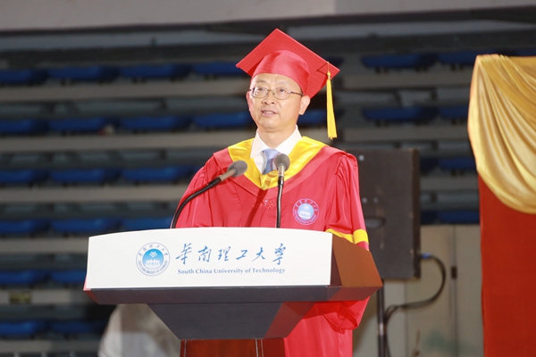 同学们,未来已来,梦想可期!从现在起,你们将以华南理工大学校友的身份,拼搏人生新的舞台。罗明燏院长曾在1985年华南工学院校友会会刊创刊号上题词“同声相应,同气相求”。今天,我也把这句话送给你们,校友之间,校友和母校之间,就是要同声相应,同气相求。不管今后身在何方,请你们不要忘记这个被戏称为“芒果莲雾”大学带给你们的青春回忆;请你们不要忘记华南理工人的家国情怀和攀登精神,不负时代,不负韶华,奋勇前进,开创未来!母校将永远站在你们身后,最诚挚地期待你们,最无私地支持你们,也最深切地祝福你们!