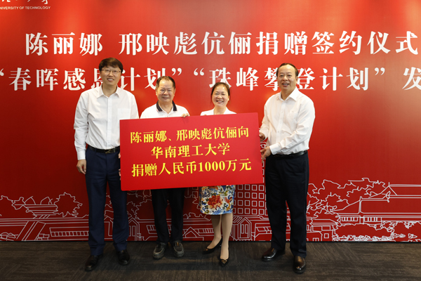 在党的二十大召开前夕,在喜迎华南理工大学组建70周年暨建校105年校庆之际,学校收到2000万元校友捐赠。9月22日上午,捐赠签约仪式在华南理工大学广州国际校区举行。学校党委书记章熙春、校长张立群代表学校接受了陈丽娜、邢映彪伉俪以及冼剑雄、何菁校友伉俪的捐赠,并为他们颁发捐赠证书及纪念品。学校党委副书记、教育发展基金会理事长陶韶菁主持仪式。