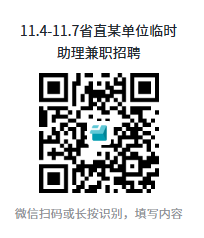 请五山校区有意报名的同学扫码填写问卷,请勿重复填写,信息包括“姓名+性别+学院+学号+联系方式+学生卡/学生证照片”,提交问卷后可查看省直群二维码,请及时进入工作群。问卷提交成功未及时加群的QQ发起临时对话联系“勤工助学家教助手(298528783)〞进群,如有疑问,可拨打87113564咨询。