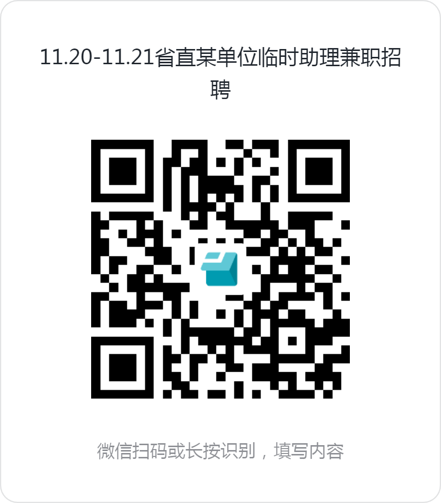 请五山校区有意报名的同学扫码填写问卷,请勿重复填写,信息包括“姓名+性别+学院+学号+联系方式+学生卡/学生证照片”,提交问卷后可查看省直群二维码,请及时进入工作群。问卷提交成功未及时加群的QQ发起临时对话联系“华工勤工助学小助手(2136362643)〞进群,如有疑问,可拨打87113564咨询。