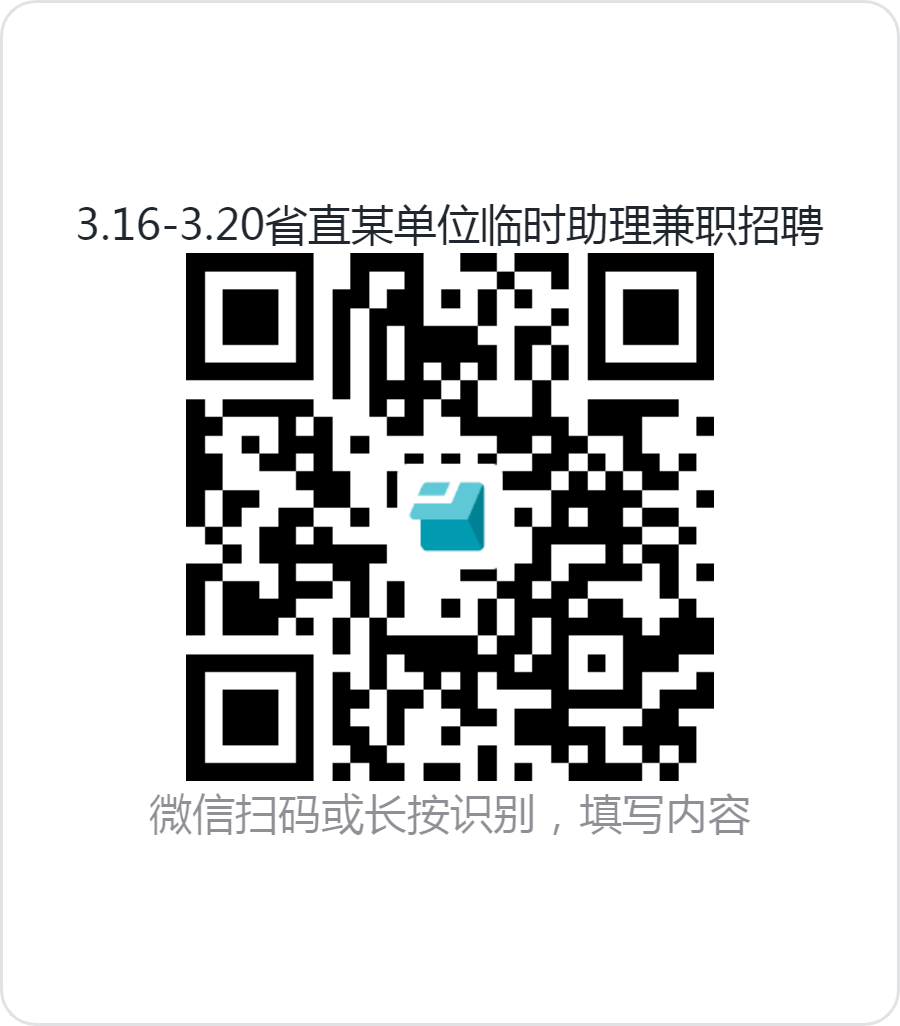 请五山校区有意报名的同学扫码填写问卷,请勿重复填写,信息包括“姓名+性别+学院+学号+联系方式+学生卡/学生证照片”,提交问卷后可查看省直群二维码,请及时进入工作群。问卷提交成功未及时加群的QQ发起临时对话联系“华工勤工助学小助手(2136362643)〞进群,如有疑问,可拨打87113564咨询。