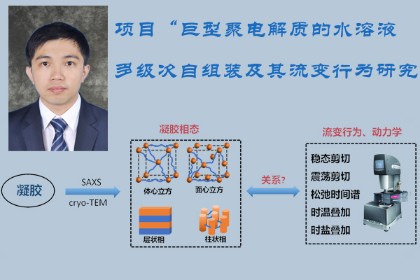 杜柱康博士本次入选项目为“巨型聚电解质的水溶液多级次自组装及其流变行为研究”。该项目拟设计并合成一类具有精确化学结构和分子拓扑结构的、基于含离子基团官能化寡聚多面体倍半笼硅氧烷(POSS)头基和中性聚乙二醇(PEO)链的巨型聚电解质(nXPOSS-PEO-nXPOSS);通过含正负离子POSS的巨型聚电解质的可控二元共混及其多级次自组装,以期获得各种具有不同超分子晶格的有序凝胶相;并通过进一步系统研究其中凝胶相的形成与转变以及对应的流变行为的变化规律,理解这类巨型聚电解质的分子结构及混合参数与溶液有序相态和溶液流变行为之间的内在关联。本项目的顺利开展预期可制备一类新颖的POSS基巨型聚电解质,通过多级次自组装获得有序凝胶相,获知其二元混合溶液中有序凝胶相态及其流变行为的关系,并为聚电解质在水溶液中的自组装的理论和应用研究奠定基础。