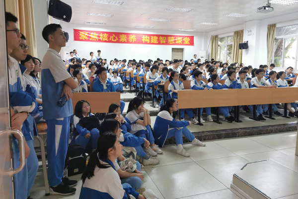 值得一提的是,本次科普讲座正值佛山一中一年一度的科技节,同时有6个科普讲座平行举行,并允许学生自由选择和流动。然而,文韬老师的讲座吸引了大量学生主动听讲,一度满堂到只能席地而坐,中途自由流动进来的同学甚至只能站着听完讲座。尤其是课件中大量的如“我不是药神”“哈利波特的隐形衣”“神奇的蝴蝶”等同学们熟悉的案例和图片,引起同学们广泛兴趣。“蝴蝶翅膀对光的吸收是不是能量储存”“怎么区分分子的左旋和右旋”“手性超材料的作用是什么”“怎么看待手性之美”......面对同学们的积极提问,文韬一一详尽回答。