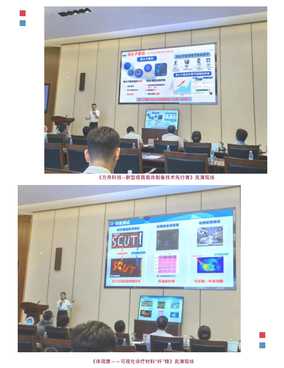 《方舟科技--新型疫苗载体制备技术先行者》和《体视康——可视化诊疗材料“纤”锋》2个研究生项目都从生物医药着手,一个通过突破现有载药技术限制,开辟新型脉冲负载技术,达到高分子囊泡批量化生产能力,努力将高分子囊泡打造成新型疫苗载体;另一个侧重将含有高分子成份的“纤”锋材料植入医疗器械,提供磁共振可视化解决方案。