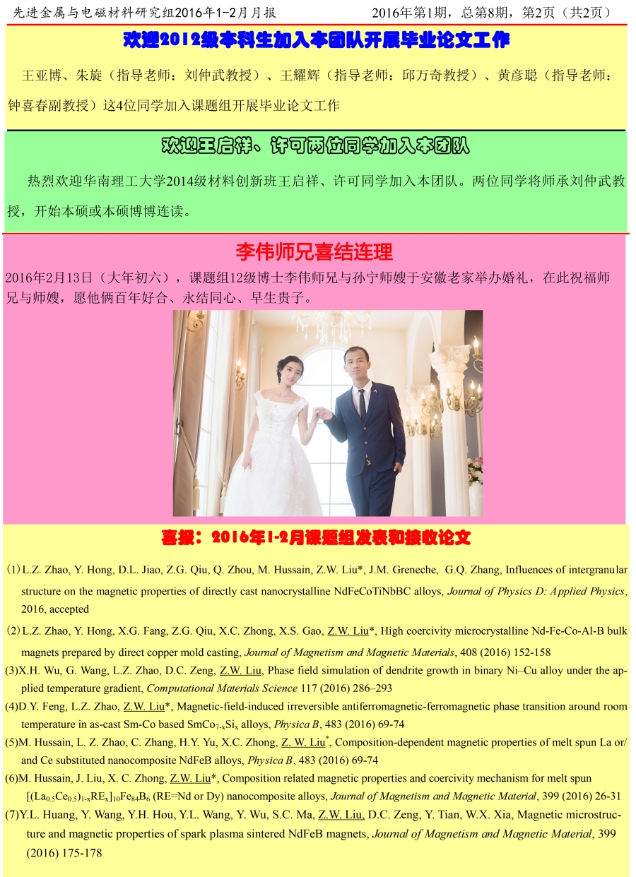 先进金属与电磁材料研究组月报(2016.1-2)