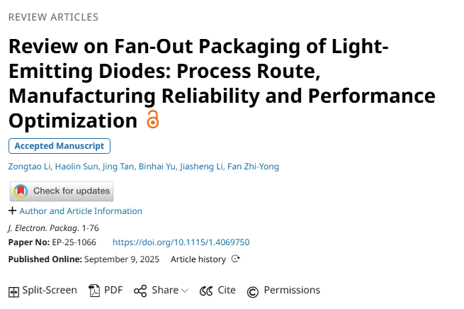 该工作由华南理工大学团队在Journal of Electronic Packaging (ASME Transactions)期刊发表(https://doi.org/10.1115/1.4069750),主要由孙浩林、谭静等同学完成,指导老师为李家声和李宗涛等。