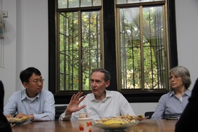 4月14日,国际著名城市地理学家,“国际城市形态论坛”创办者之一及资深领导,前英国地理学家协会城市形态研究会主席,英国伯明翰大学Jeremy Whitehand教授一行来访我校,考察即将在今年9月4日至7日由我校主办的“第16届国际城市形态论坛”的筹备情况。中国工程院何镜堂院士、建筑学院党政负责人等在红楼会议室接见了来访外宾。