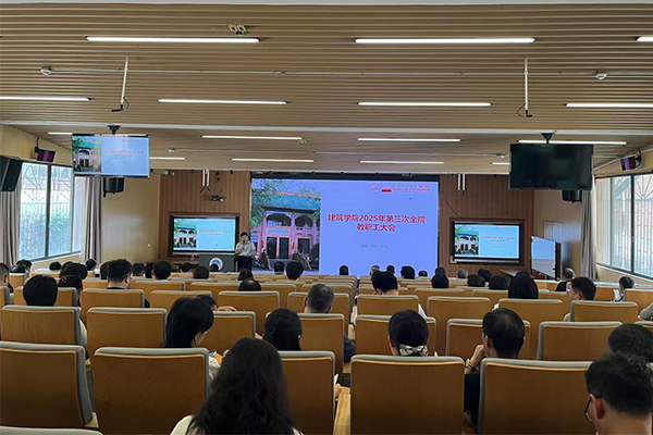 10月16日下午,建筑学院在采荷建筑楼一楼汉森多功能报告厅召开2025年第三次全院教职工大会。学院党政领导班子全体成员、全院教职工参加会议,会议由学院党委书记叶志锋主持。
