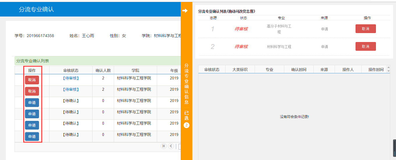 专业分流学生报名(学生操作)