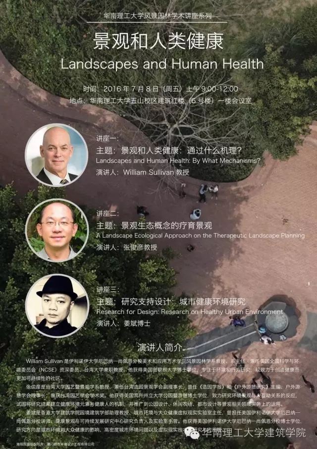 Speaker: Prof. William Sullivan (Senior members of NCSE; Director of department of Landscape, School of Fine Arts and Applied Arts, University of Illinois at Urbana-Champaign)