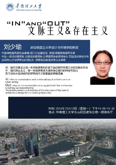 Speaker:Pro. LIU Shaoyu (Department of Architecture, National University of Singapore)