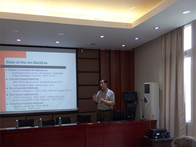 After that, Gary, who was an associate editor of the IEEE Transactions on Neural Networks and IEEE Control Systems Magazine during 1994-1999, and of the IEEE Transactions on Control Systems Technology, IEEE Transactions on Systems, Man and Cybernetics and IFAC Journal on Automatica and Mechatronics during 2000-2010, summarized the state of Computational intelligence and evolutionary multiobjective optimization field. Then he expatiated on the deficiencies and the thought of solution while we should optimize plenty of targets.