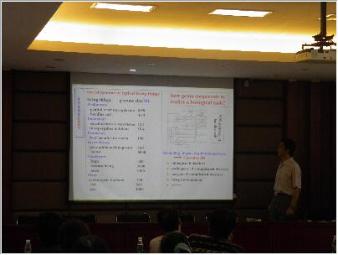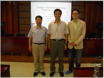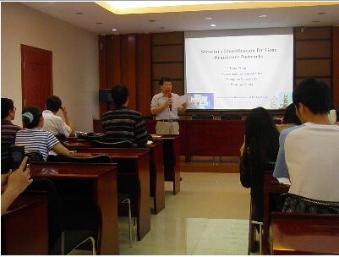 First, Professor Deng gave us a brief introduction about the guest, Professor Zhou, who is the professor and doctoral tutor in the Research Institute of Automation Control Theory and Technology in Tsinghua University, and welcomed his arrival. Professor Zhou is now the Deputy Director in the academic committee of School of Information Science and Technology of Tsinghua, and associate editor of several international academic journals. Professor Zhou gave us a detailed introduction about structure identification for gene regulatory network. The report was started from the difficulties of identifying the direct reason-result relationship between biological cell and component, and Prof. Zhou discussed how to improve the decision of structure identification for gene regulatory network using the method of structure property such as power law and robust state estimation. Professor Zhou gave us detailed introduction about every method and tested them. The result showed that the decision of parametric estimation had been improved a lot and the false positive rate had also been reduced compared with other approaches. And computational complexity was almost the same or even lower.