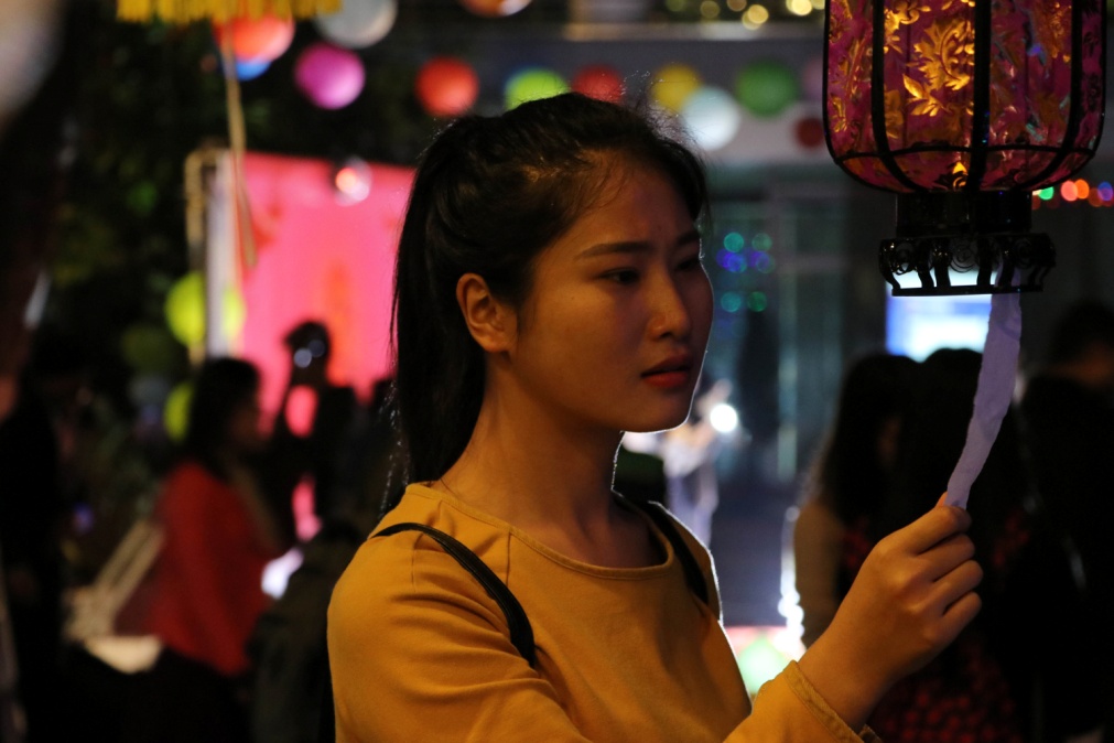 傍晚时分,华灯初上,活动气氛逐渐热烈。18:30,魏新颜同学一曲《fly me to the moon》拉开了本次灯会活动的序幕。踢毽子、勾铁环、接帽子、乡音传话等经典传统游戏悉数登场,大量的观众朋友前来参与游戏活动,向着更高的游戏积分发起冲击。而作为灯会重头戏的整点表演,吉他手曾晓辉带来的《彩虹》,西湖之声歌手陈月带来的《岁月神偷》更是点燃了现场观众的热情。最值得一提是余拓同学带来的中国传统武术表演,将这场盛宴的气氛推上了高潮。