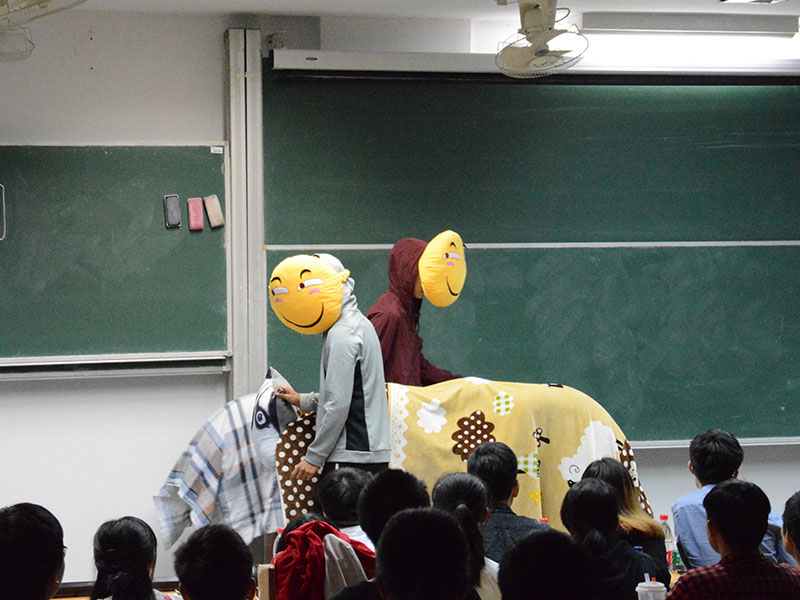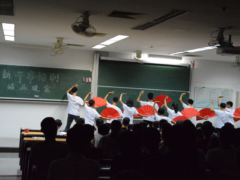 当晚,在北校教学区A3 303举行了结业晚会。此次出席的嘉宾有:团委副书记黄墉,学生会主席黄冠豪,学生会副主席罗泳妍,陈逸东。窗外虽细雨泠泠,但晚会上,信息部的风趣小品,宣设部的爆笑童话,秘书部的高昂歌声,素拓部的激情舞蹈,体育部的深情合唱,文娱部的monica舞,学术部的太极之扇,生活部的改编项羽,组织部的惊艳西游等节目不仅展现了新生们的朝气与活跃,温暖了现场的氛围,更是在同学们的热情掌声中,续写快乐。之后团委副书记黄墉师兄发表讲话,高度赞扬了17级新干事们这两天的表现,并将优秀部门奖颁给了所有部门。随后各部门部长发表感言。最终,晚会在小游戏中圆满结束。