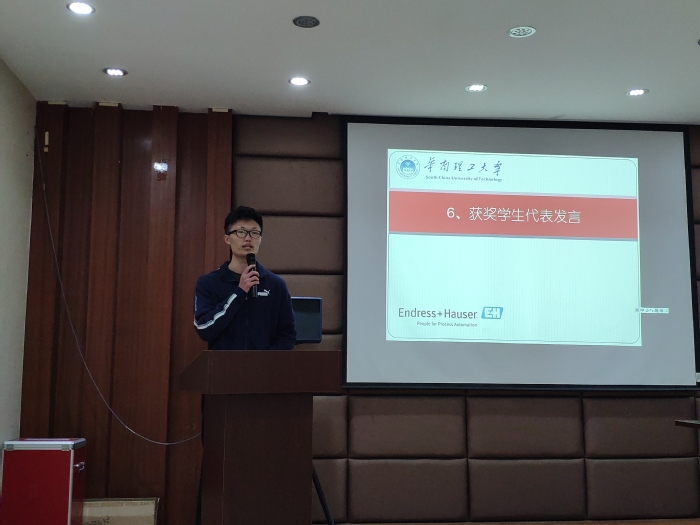 罗家祥副院长宣读了获奖名单之后,谭海玲女士为获奖学生们颁奖。接着,高熠同学代表获奖学生向E+H公司对我院学生的表彰及肯定致以感谢,并表示会以最大的努力为社会创造价值,回报社会。