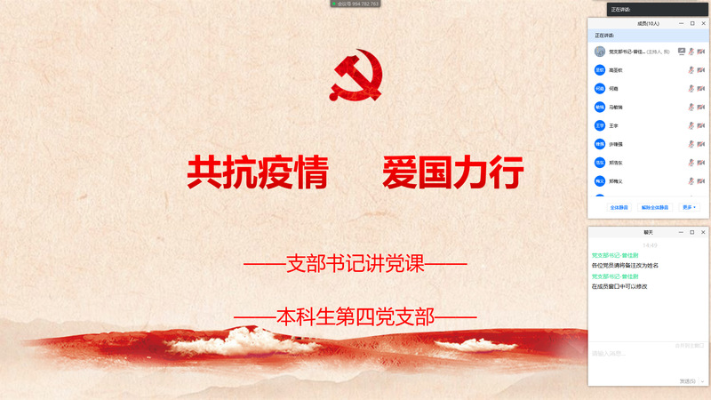 面对突如其来的疫情,自动化科学与工程学院本研学生党支部的同学们虽然分散在各地,但仍共同在“云”端同战“疫”,聚力共担当。自224日开学以来,在学院党委的组织下,各个党支部学习生活有条不紊,在“云”端开展了“云”升旗、“云”课堂、“云”学习、“云”党课、“云”组织生活等一系列抗“疫”活动。做到组织生活“线上过” 党员队伍不掉线