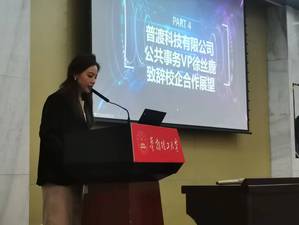 普渡科技有限公司公共事务VP徐丝鹿女士致辞校企合作展望,并由俞祝良副院长授予“学生就业创业实践基地”牌匾,罗家祥副院长为竞赛专家组颁发聘书。