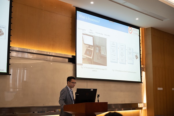广州大学李致富教授做题为“压电驱动执行器的迟滞及其分数阶建模”的报告。报告首先回顾智能材料执行器迟滞的建模和控制方法的研究现状;然后,介绍一种自适应控制方案来补偿非线性系统中的Prandtl-Ishlinskii 迟滞。最后,将介绍一种新型的压电定位平台的迟滞分数阶建模方法,并给出实验验证结果。