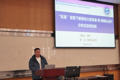 沈阳工业大学胡杰博士作“双高”背景下新型电力系统源-荷-储隐私保护分布式协同控制”报告,提出融合隐私保护机制的分布式协同控制框架,为构建安全、灵活的新型电力系统提供了技术参考。