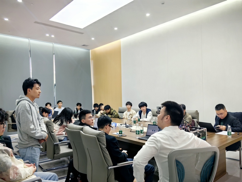 同学们也抓住交流机会踊跃提问,内容涵盖上位机开发、产品落地与实习机会等多个方面。宋知巍先生对这些问题给予了详细解答,并表达了欢迎华工学子前来实习和工作的诚挚意愿。交流最后,辅导员闻予彤把有意应聘实习岗位的多份简历交给了相关工程师。