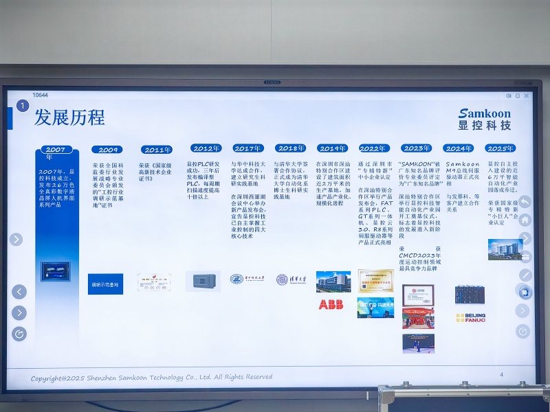 据了解,显控科技于2007年3月成立,是一家集设计、研发、生产与销售为一体的智能制造解决方案供应商,专注于为客户提供稳定、高效、自主可控的智能制造解决方案。公司目前的核心产品有人机界面(HMI)、可编程逻辑控制器(PLC)、一体机(HMI+PLC)、伺服控制系统、工业物联网平台等,可以说它是我国工业领域智能化发展的一个推动者和见证者。