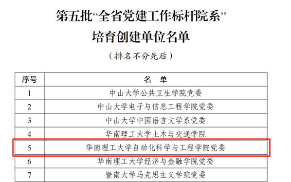 喜报丨自动化科学与工程学院入选第五批“全省党建工作标杆院系”培育创建单位