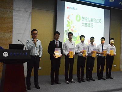 大会第三项,第十二届智能控制设计大赛组委会主席黄墉代表智控组委会对大赛概况进行了汇报。今年的智控大赛沿用往年命题的方式进行,命题内容广泛而丰富,涵盖了电子技术与控制技术、单片机、可编程器件开放、计算机视觉等方面。本次比赛要求每个队伍在规定时间里完成设计、制作、调试等相关工作,最后通过实物展示与技术报告相结合的方式参加评审并角逐最后的获奖作品。现场的观众观看了部分参赛作品的视频,大家对这些作品抱以了热烈的掌声。