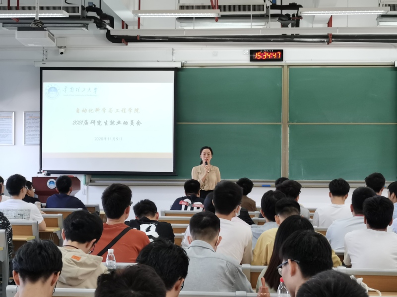 2019年11月9日下午,自动化科学与工程学院在博学楼505召开了2021届研究生就业动员大会。研究生辅导员胡冰玉老师,以及2021届研究生150余人参加了本次会议。