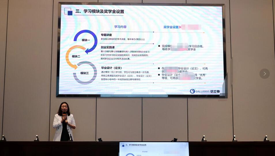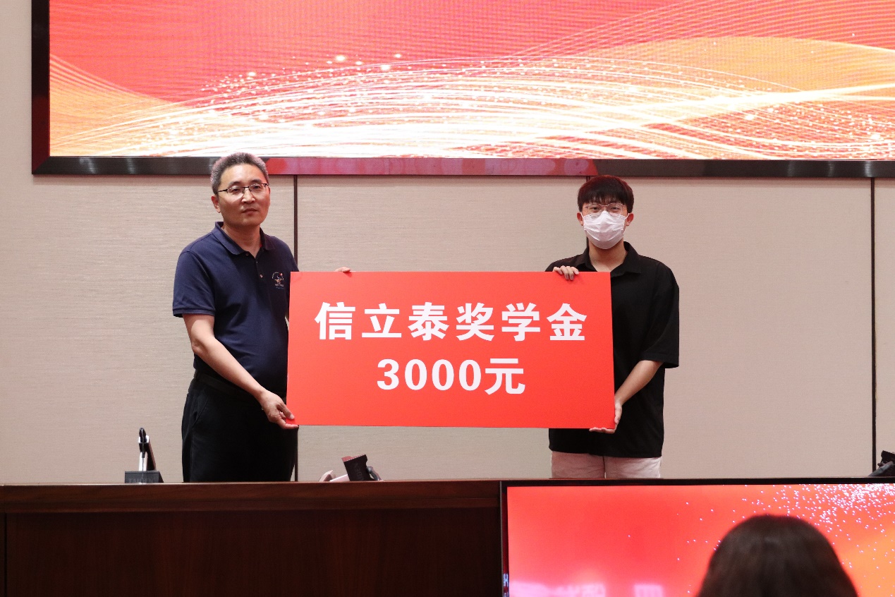 信立泰公司颜杰常务副总经理给第一期学员代表颁发“信立泰奖学金”