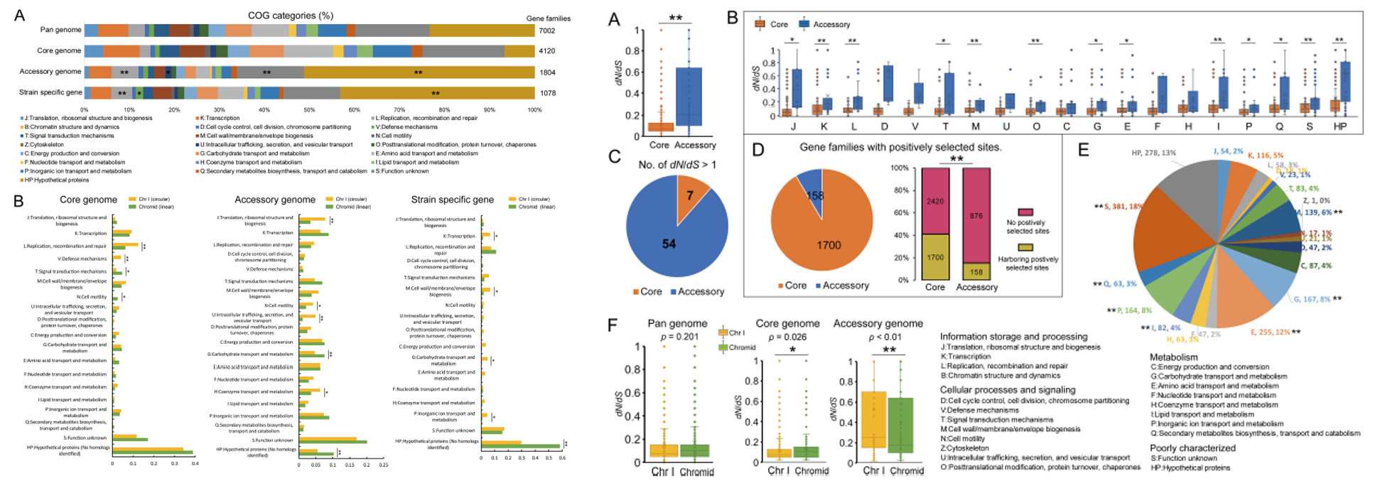 研究还发现泛基因组不同组分间和根癌农杆菌大小染色体间在基因功能富集和选择性压力等方面存在显著差异,表明了不同基因组份和不同染色体可能在环境适应性进化中扮演不同的角色(图4)。