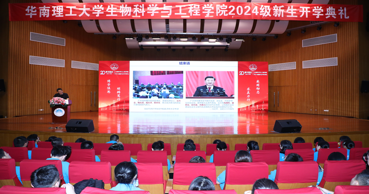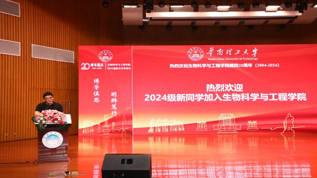 在介绍生物学科历史与当前合成生物学后,熊伟院长向新生们介绍了学校和学院的基本情况。他回顾了学院的办学历史,介绍了学院的资源平台、人才队伍、科研攻关和教学成果等。他指出,建院20年来,学院历届师生接续奋斗,为我们打下了坚实基础,希望2024级新生同学们在华园,在学院,要发现自己天赋和兴趣,要牢记习近平总书记的嘱托,立大志、明大德、成大才、担大任,要做有理想、敢担当、能吃苦、肯奋斗的新时代好青年,接过一代又一代生物学院人的接力棒,奋发有为,意气昂扬,在人生的青春赛道上,跑出耀眼的成绩,实现初心梦想,成长为国家之栋梁!(图/文 严伟峰 刘荣 生物科学与工程学院学生工作办公室)