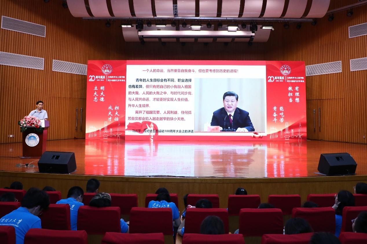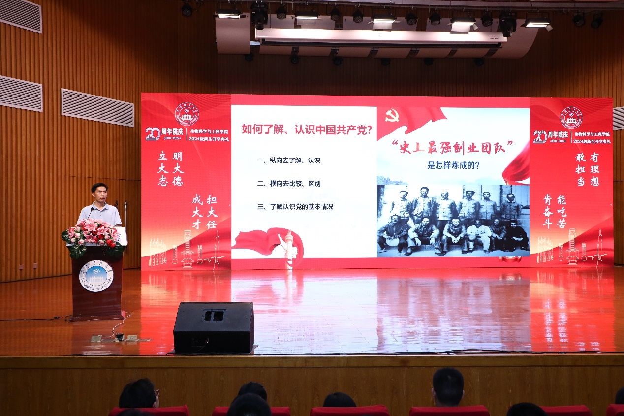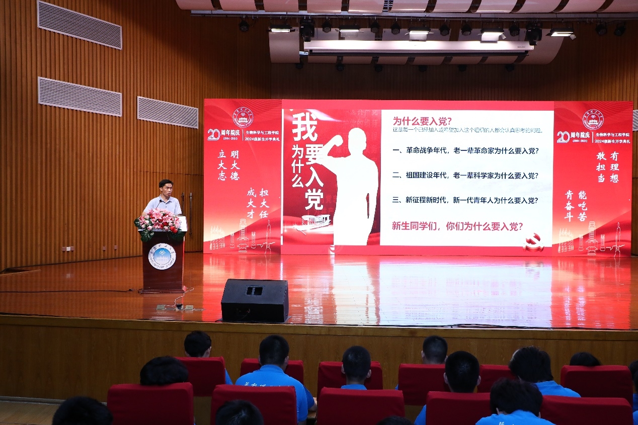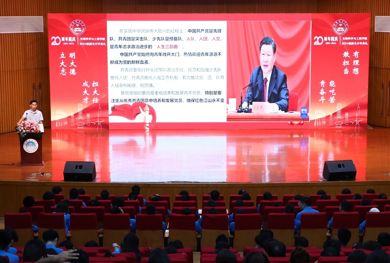 为深入贯彻落实习近平新时代中国特色社会主义思想,加强2024级新生同学们思想政治教育和入党启蒙教育,吸引优秀青年大学生加入中国共产党,2024年9月3日下午,生物科学与工程学院党委在大学城校区音乐厅举行入党启蒙教育。活动由学院党委副书记王燕林主讲,全院385名2024级本研新生参加。