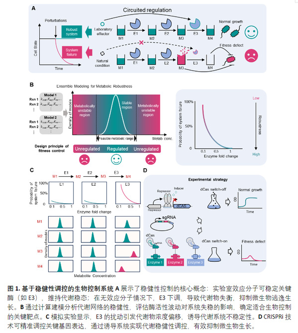 为了克服上述局限性,华南理工大学生物科学与工程学院熊伟教授团队提出了一种全新的代谢稳健性调控方法。利用计算建模工具,预测并锁定了微生物核心代谢网络中的关键靶点,这些靶点对代谢网络的稳健性具有显著影响。通过CRISPR干扰技术,研究团队能够在实验中精准调控这些基因的表达,定量控制微生物适应度,进而抑制微生物的生长。