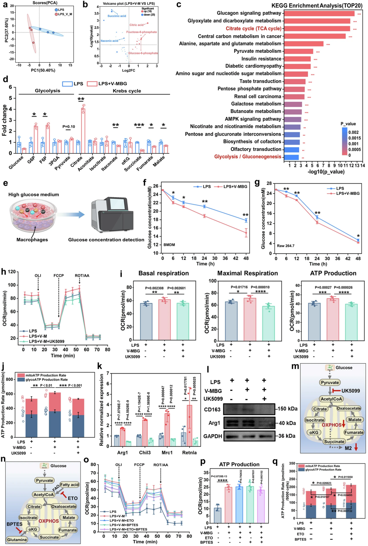 Figure 5. V-MBG remodels macrophage energy metabolism towards an OXPHOS-dominant phenotype