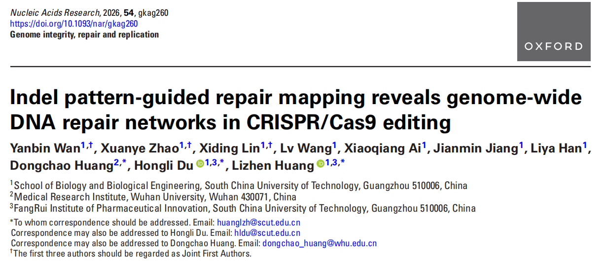 Huang Lizhen and Du Hongli’s joint team published in Nucleic Acids Research: IPGRM technology reveals genome-wide DNA repair network in CRISPR/Cas9 editing