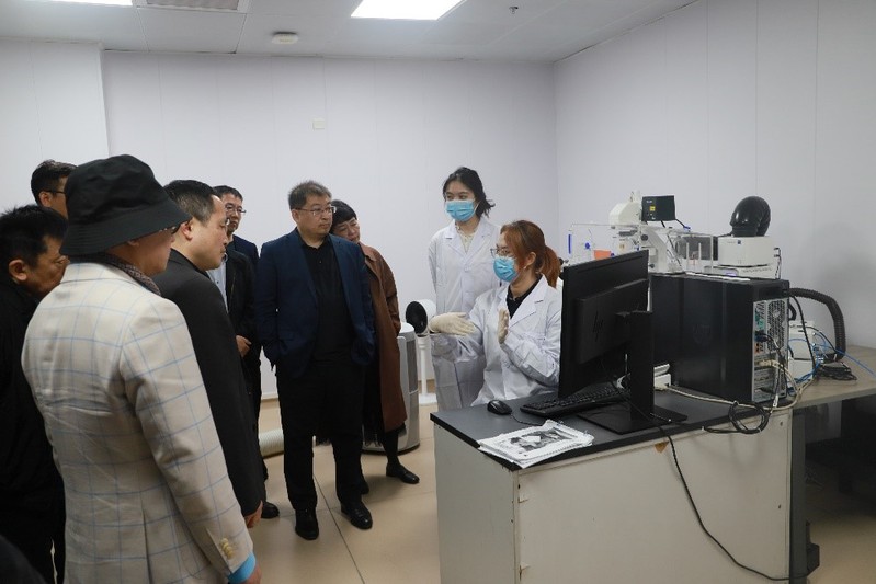 会后,专家组参观了实验室和科研平台。项目组成员现场展示了搭建的活体成像平台,可视化显像纳米药物在小鼠肝脏中的运动。此外,项目组还展示了调控肿瘤微环境的纳米药物制剂,并进行了详细的讲解。
