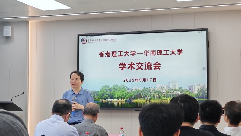 On the morning of September 17, 2025, Professor Mi Yaorong (Foreign Academician of the Chinese Academy of Engineering) from The Hong Kong Polytechnic University led a delegation including Professors Su Zhongqing, Zhao Xiaolin, Huang Haitao, Shen Xi, and Chen Zibin to South China University of Technology for academic exchange. The meeting was held in Room 346, Building 25, Wushan Campus of South China University of Technology, and chaired by Professor Guo Baochun, Dean of the School of Materials Science and Engineering at South China University of Technology.Attending the meeting from South China University of Technology were: Professor Chen Guangming, School of Civil Engineering and Transportation; Professor Chu Yanhui, School of Materials Science and Engineering; Professor Ma Longtun, School of Materials Science and Engineering; Du Shufen, Director of the School Office, School of Materials Science and Engineering.