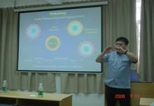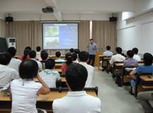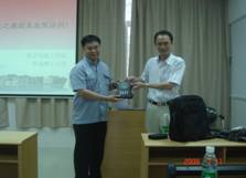 | 向客人赠送礼品 | 曾教授进行学术报告 | |