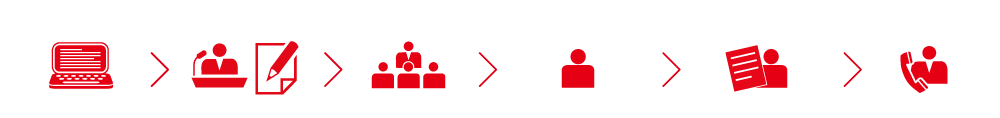 网上申请——网上面试——个人面试——2天评估中心——录用通知