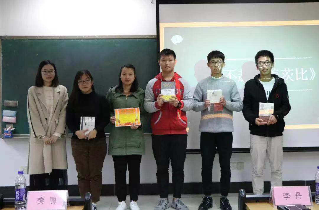 此次读书分享共分四个小组,每个小组各有特色。第一小组“B-612”分享的书籍是《小王子》,介绍了该书的大概内容,并总结出了中心主题--责任,同时希望我们大学生可以做好自己,培养责任意识。第二小组“森林嘿嘿嘿”介绍了《挪威的森林》一书,小组五人分别分享了自己的读后感,感情真挚,引人深思。第三小组“TFBOYS&GRILS”画风独特,他们先由电影《无问西东》做引,引出书籍《南渡北归》,在介绍的环节中,小组加入了一段表演,给分享环节增添了另一份色彩。最后,第四小组“平凡的世界”分享了路遥的《平凡的世界》,他们分别简述了《平凡的世界》三部书的内容,分享了自己的读书感悟,同时又挑出书中一个精彩的情节来进行评析,阐述自己独到的见解。