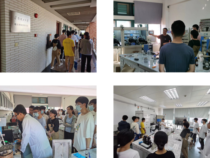 紧接着同学们开启了电化学能源研究组实验室的参观之旅,分别由闫童,涂院华,潘显凯三位同志为到场的学生依次讲解了锂离子电池的制备过程,燃料电池的组装和测试过程,同时在他们的指导下,同学们也亲身体验了制备过程,对锂离子电池和燃料电池技术有了更加深刻的理解