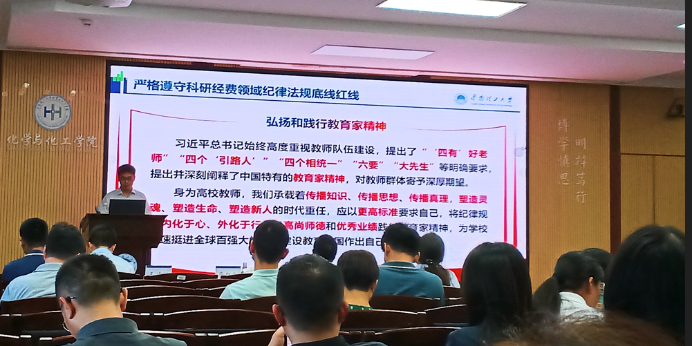 2025年7月3日下午,化学与化工学院在逸夫工程馆4楼会议室召开全院师德教育大会,学院领导班子及全体教职工参会,会议由学院党委郑存辉书记主持。