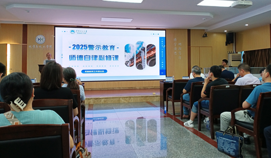 学院李映伟院长为全院教师讲授“师德自律必修课”,重温教师职业行为负面清单,加大对涉及师生关系、学术不端等警示案例的通报力度,以案为鉴,警钟长鸣,强化自我约束,引导教师爱岗敬业,以德立身。
