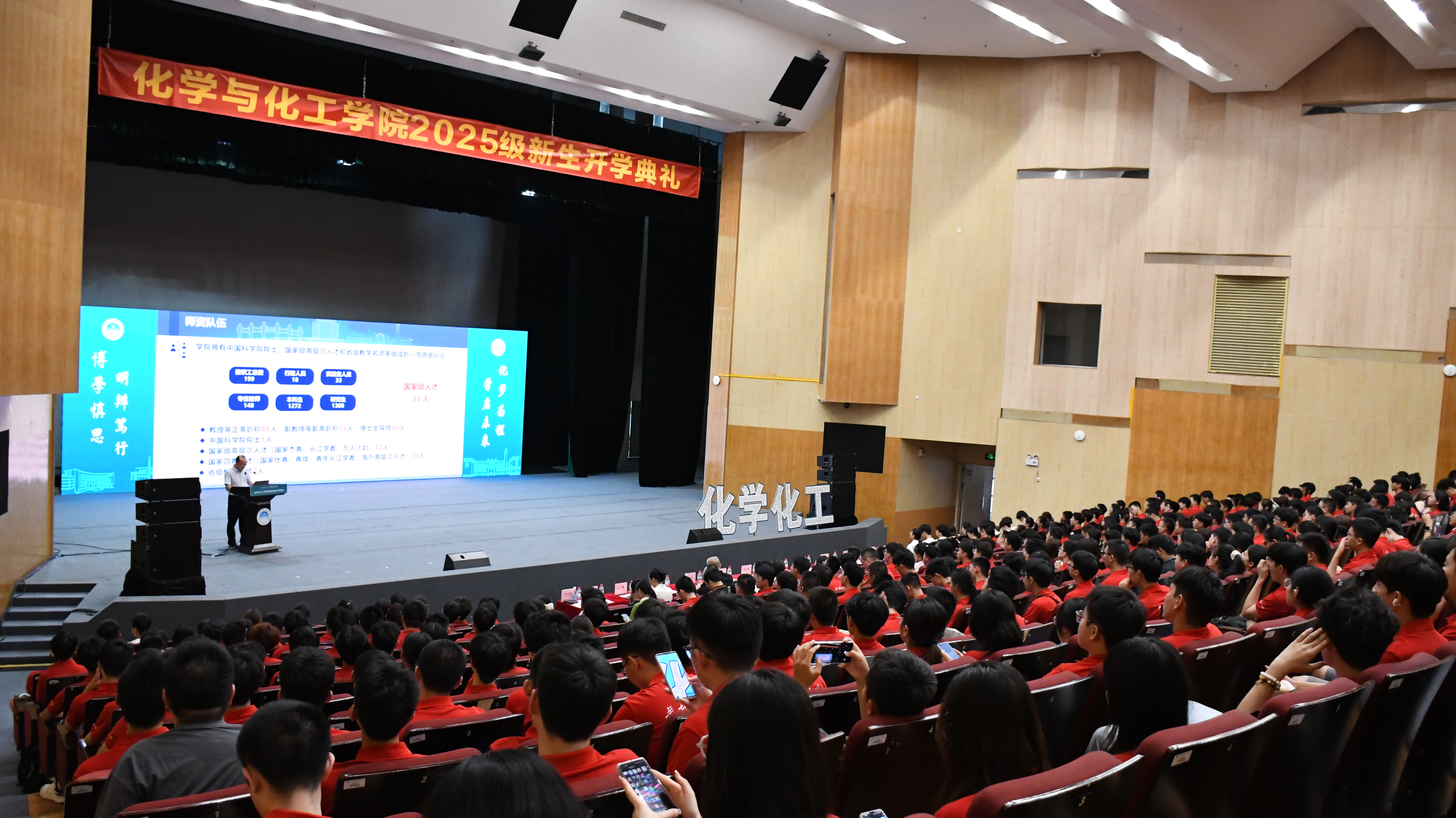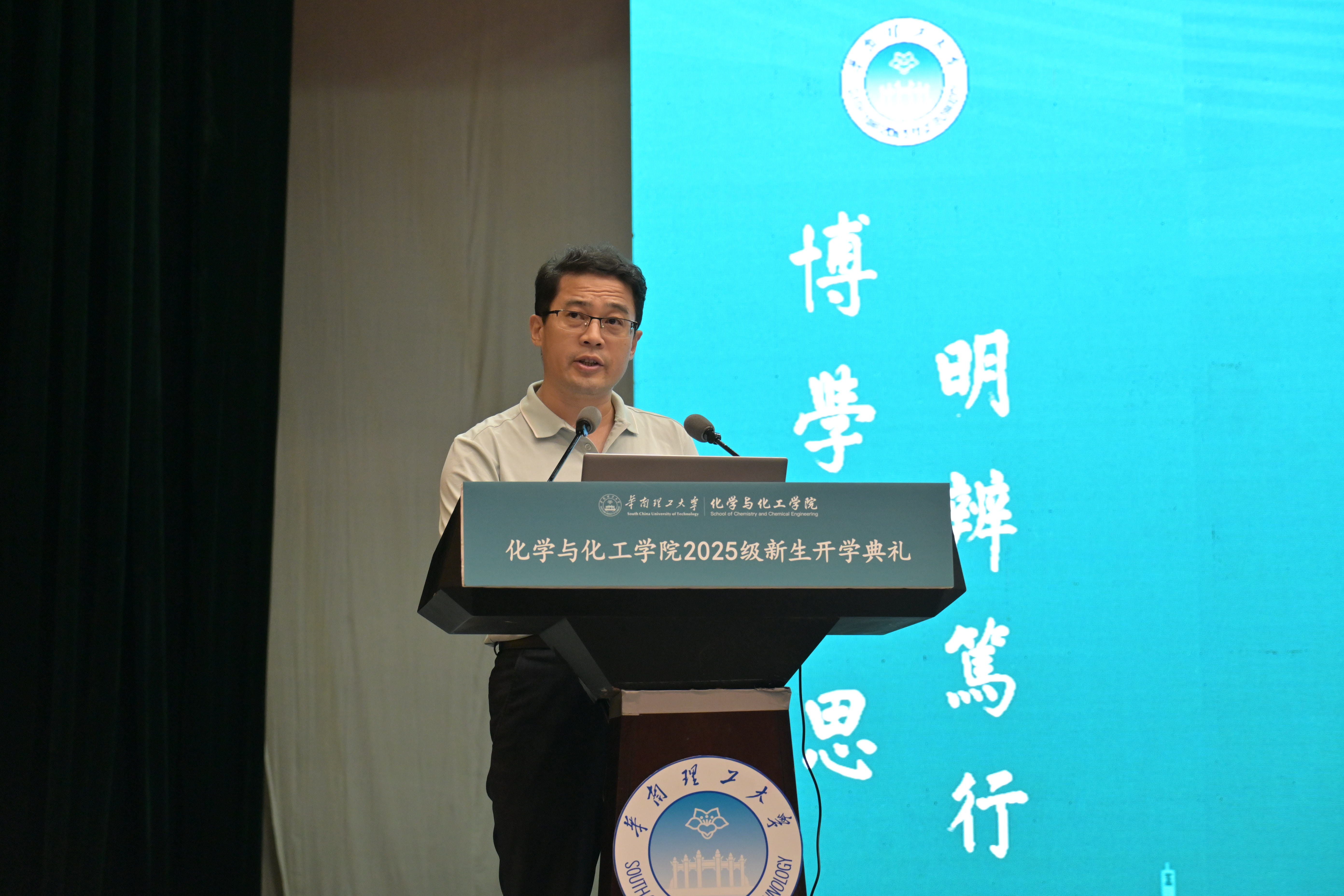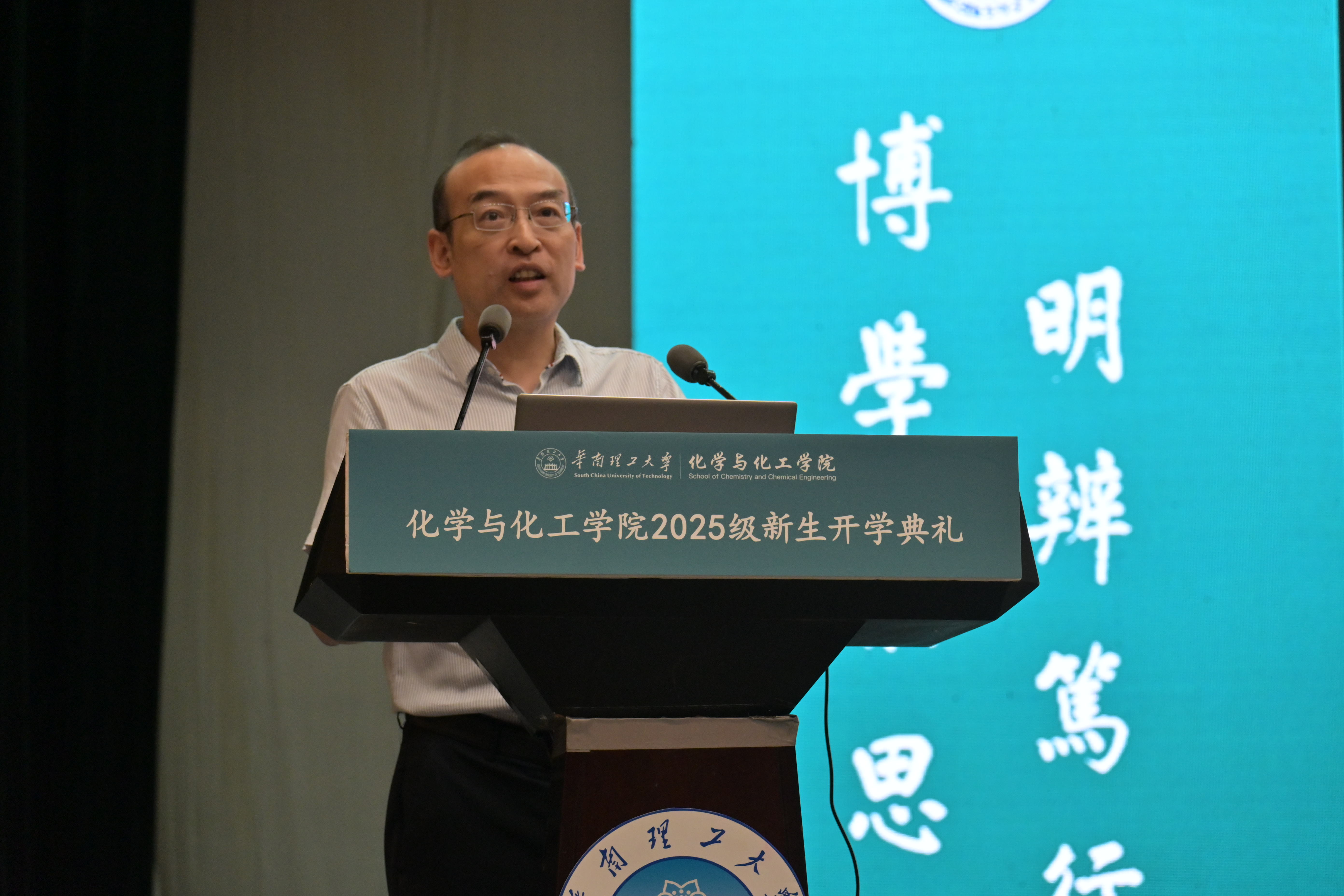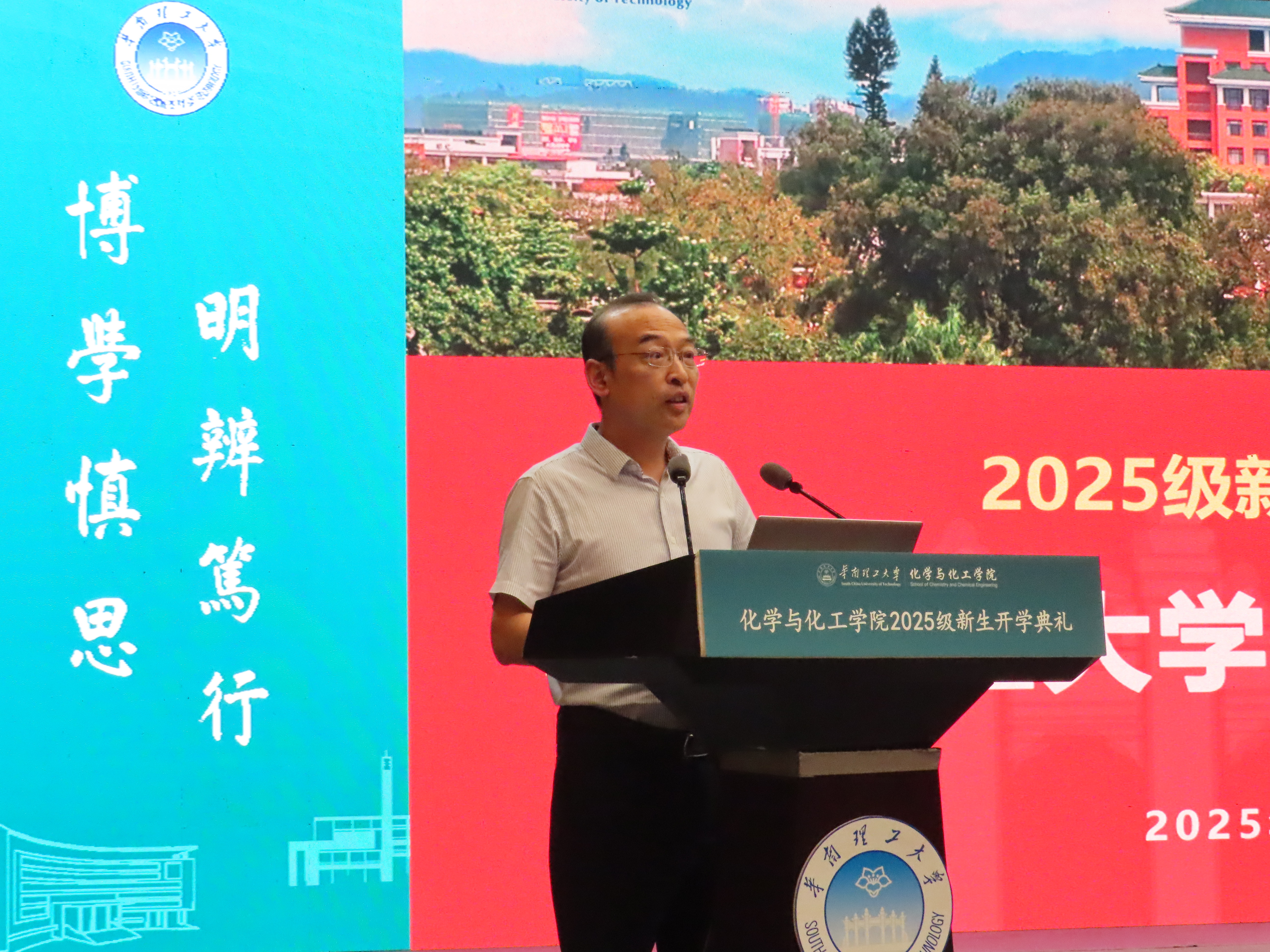 2025年9月11日下午,华南理工大学化学与化工学院2025级新生开学典礼暨新生入学教育活动在大学城校区学术大讲堂(主会场)与五山校区逸夫工程馆四楼会议室(分会场)举行。