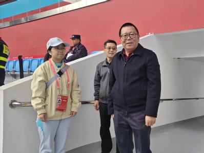 老师一行首先抵达志愿者服务站点,实地走访看望了正在岗位上辛勤服务的志愿者同学们,并详细了解大家的工作内容和切身感受。郑存辉书记对同学们昂扬的精神面貌和专业的服务态度表示赞许,他勉励大家:“大家站在服务一线,辛苦了!你们在寒风中坚守的身影,是全运会一道亮丽的风景线。大家在倾情奉献的同时,一定要做好自身防寒保暖,注意劳逸结合,学院永远是你们最坚实的后盾。”
