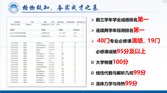 娄雨彤同学以“格物致知”的精神深耕专业,专业成绩第一,连续两年综测第一,40门必修课满绩,19门达95分以上,获国家奖学金、校一等奖学金、三好学生以及全国大学生数学竞赛一等奖等荣誉。同时,在学校学院系统培养下,娄雨彤同学收获了清华大学、复旦大学、中国科学院物理研究所等院校的推免录取意向,这份认可让她更加感念学校的悉心栽培,也坚定了她探索科技前沿的决心。