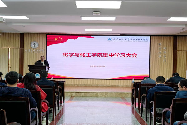 11月27日下午,化学与化工学院党委召开全院师生集中学习大会。会议邀请了华南理工大学公共管理学院刘红波教授作党的二十届四中全会精神专题报告。会议由学院党委副处级组织员巫剑伶主持,学院700多名教工及学生党员通过线下或线上方式参加会议。