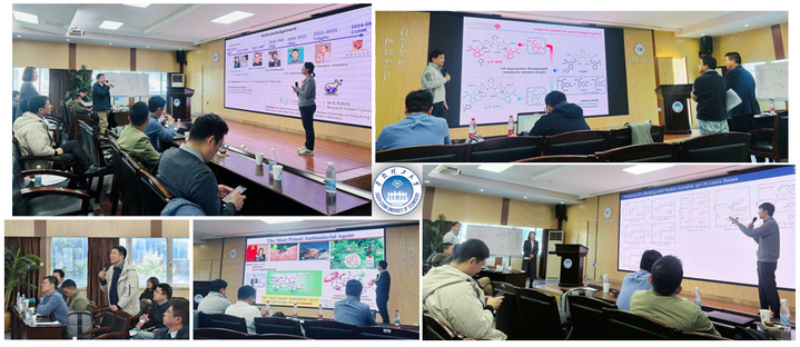 本次论坛学术氛围浓厚,思想碰撞激烈。10位来自香港理工大学、香港城市大学、香港科技大学、香港中文大学(深圳)等高校的顶尖学者依次登台,带来了一系列兼具理论深度与应用价值的高水平学术报告。从殷骏教授团队基于机器学习势能对杂化钙钛矿材料降解机制与结构异质性的突破性研究,到范战西教授在低维金属纳米材料晶相调控及电催化应用领域的最新成果;从万晴云博士提出的异金属协同设计近红外磷光材料新思路,到李兴教授通过分子想象工程赋能多孔材料与电化学技术革新的实践探索,每一场报告都聚焦学科前沿,展现了化学领域的创新活力。此外,于涵教授关于全聚合物太阳能电池材料的高效设计策略、何健教授在框架与纳米簇基多相催化领域的系统性研究、卢振品博士与全楊健教授在有机硼化合物合成与应用方面的原创性成果,以及彭小水教授在金属催化串联反应合成复杂天然产物的技术突破,均引发了现场学者的热烈讨论与深度思考。各位学者的报告兼具理论深度与应用价值,引发现场师生的热烈讨论与深入思考。